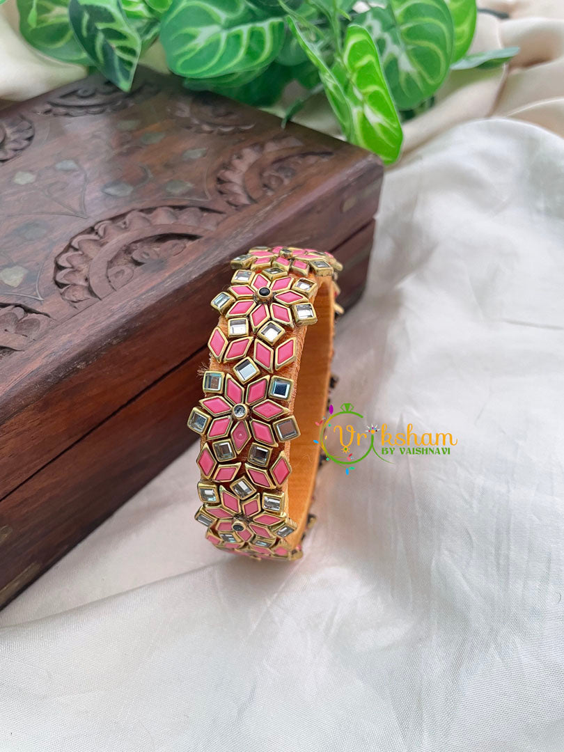 Rose Matt Silk Thread Kundan Kada Bangle -G8622