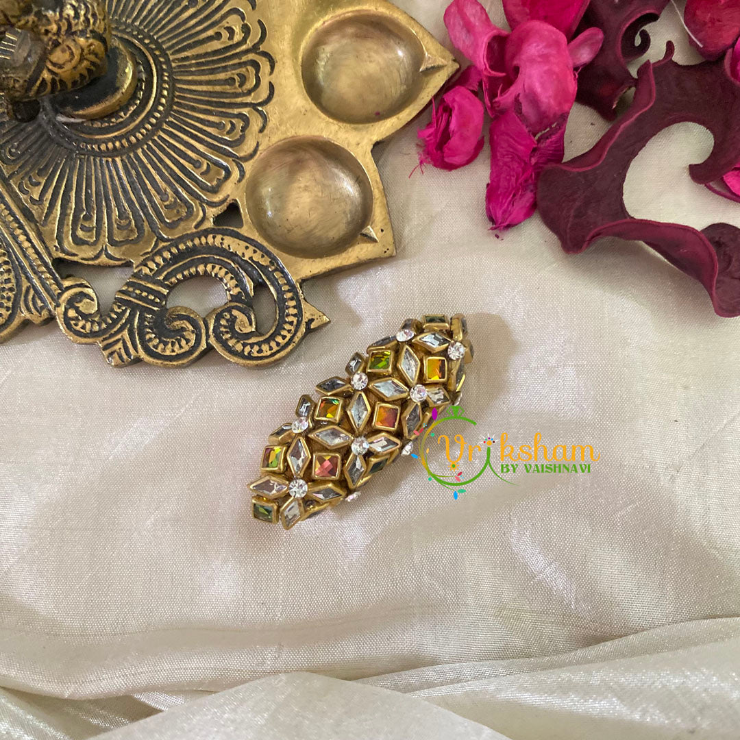 Make Material: Silk Thread Kundan Saree Pin - are made of kundan stones, silk thread  and metal alloy.