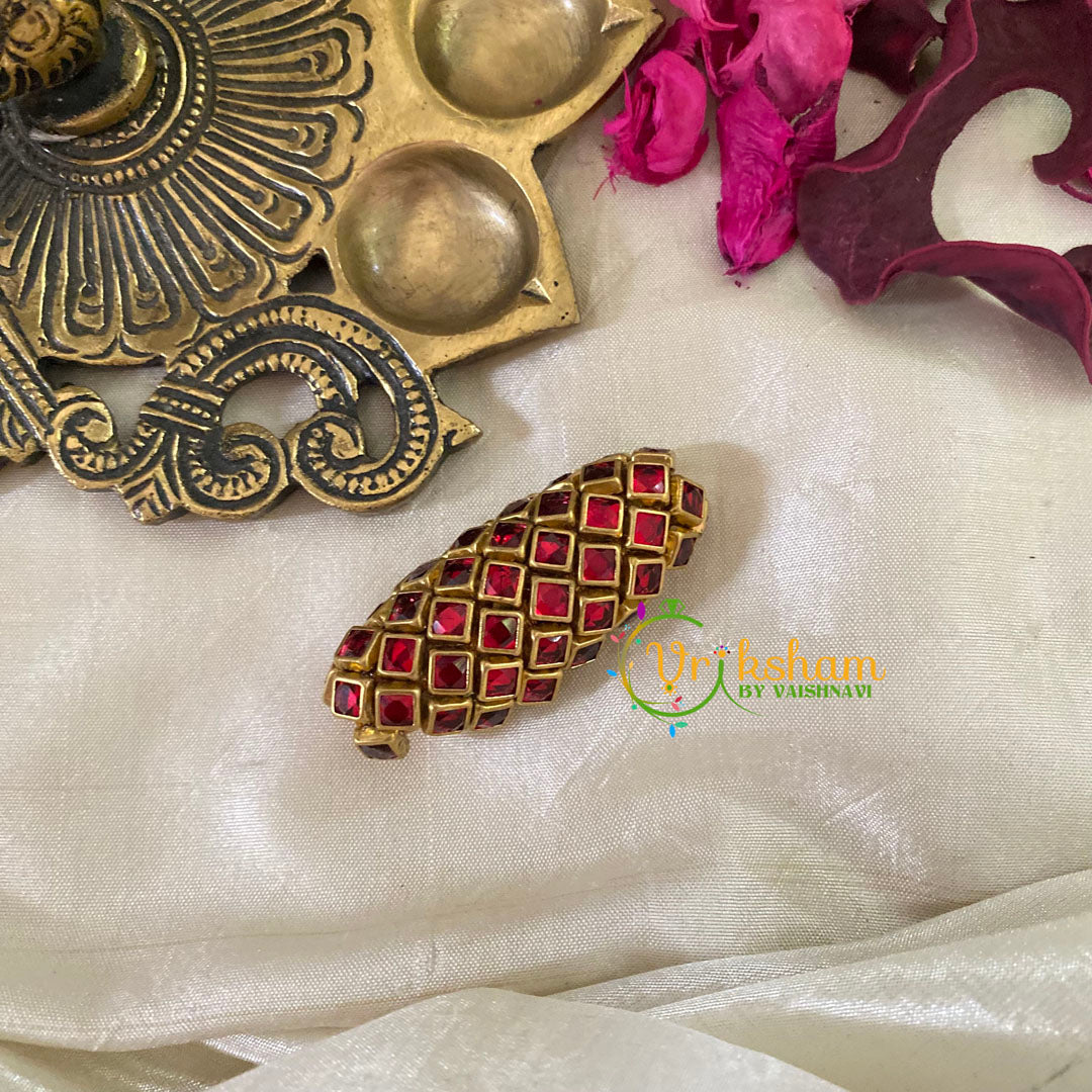 Silk Thread Kundan Saree Pin -Red Shell-G9380