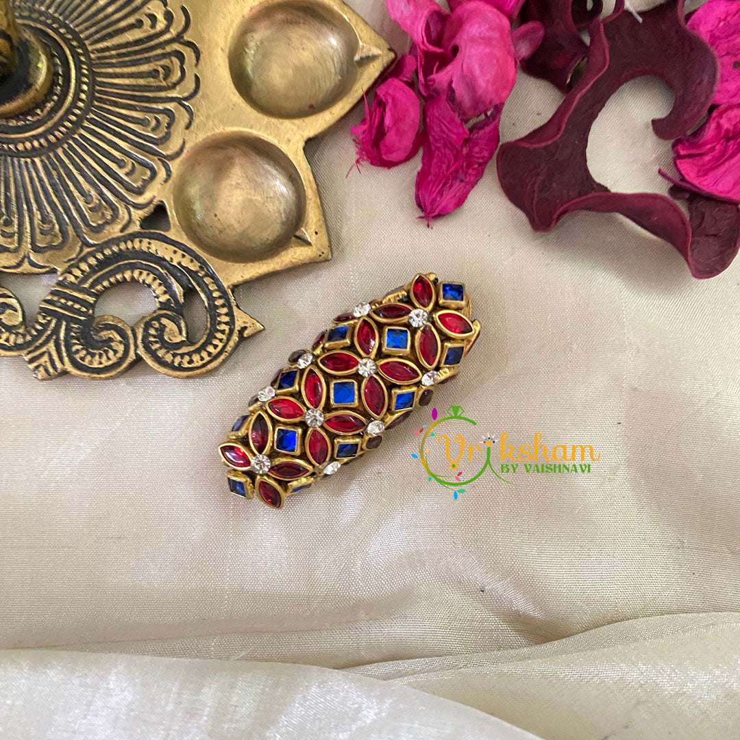 Silk Thread Kundan Saree Pin -Red Blue-G9397