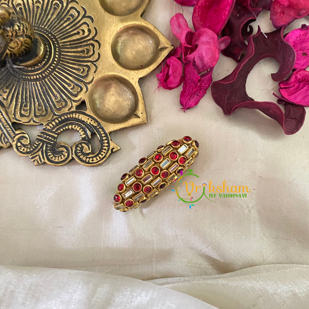 Silk Thread Kundan Saree Pin -Red White lInes Dots-G9398