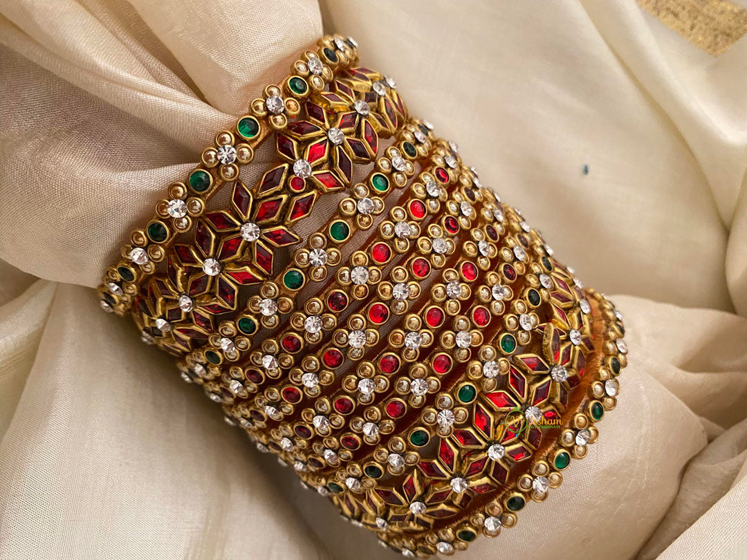 Silk Thread Red Green Kundan Bridal Bangle – Silk Thread Bangles- kundan stone festive bangles , Comes as a set only.
