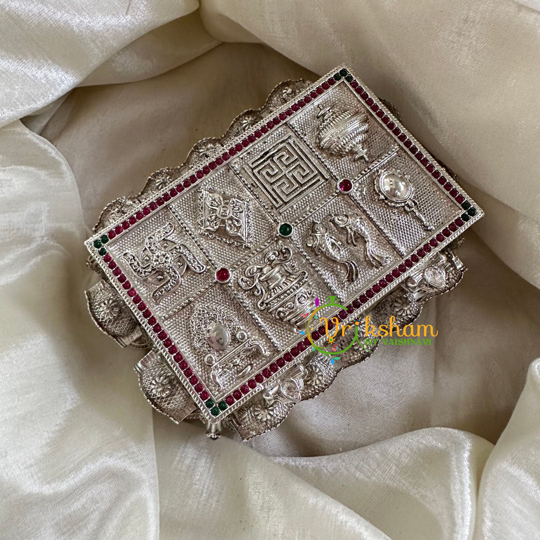 Silver AD Stone Kumkum Box - AD stone studded and engraved antique look polish kumkum box.