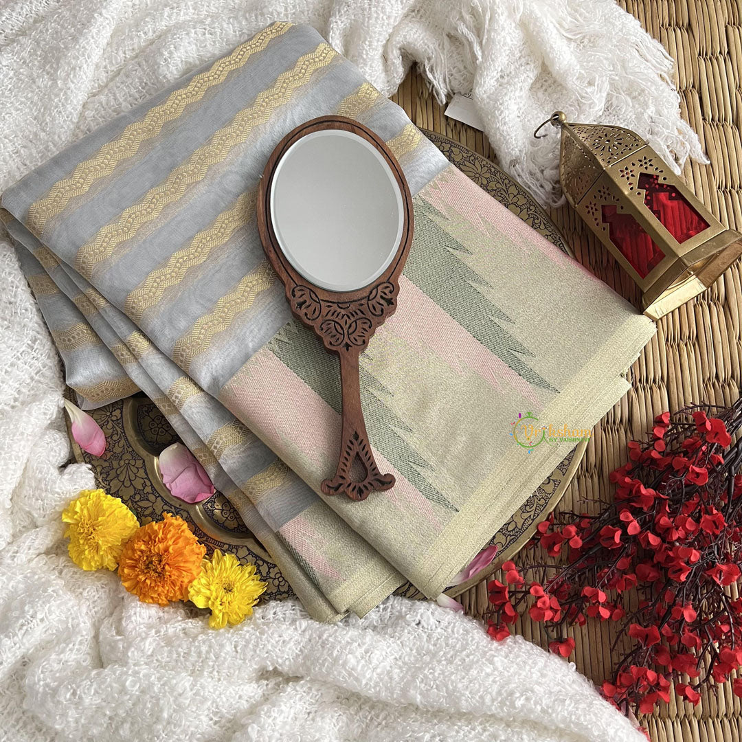 Channel your inner goddess with our luxurious Silver and Golden Organza Saree. Handcrafted with care, this saree features exquisite silver and golden accents that shimmer with every step. Elevate your style and make a statement at any event with this handloom beauty.