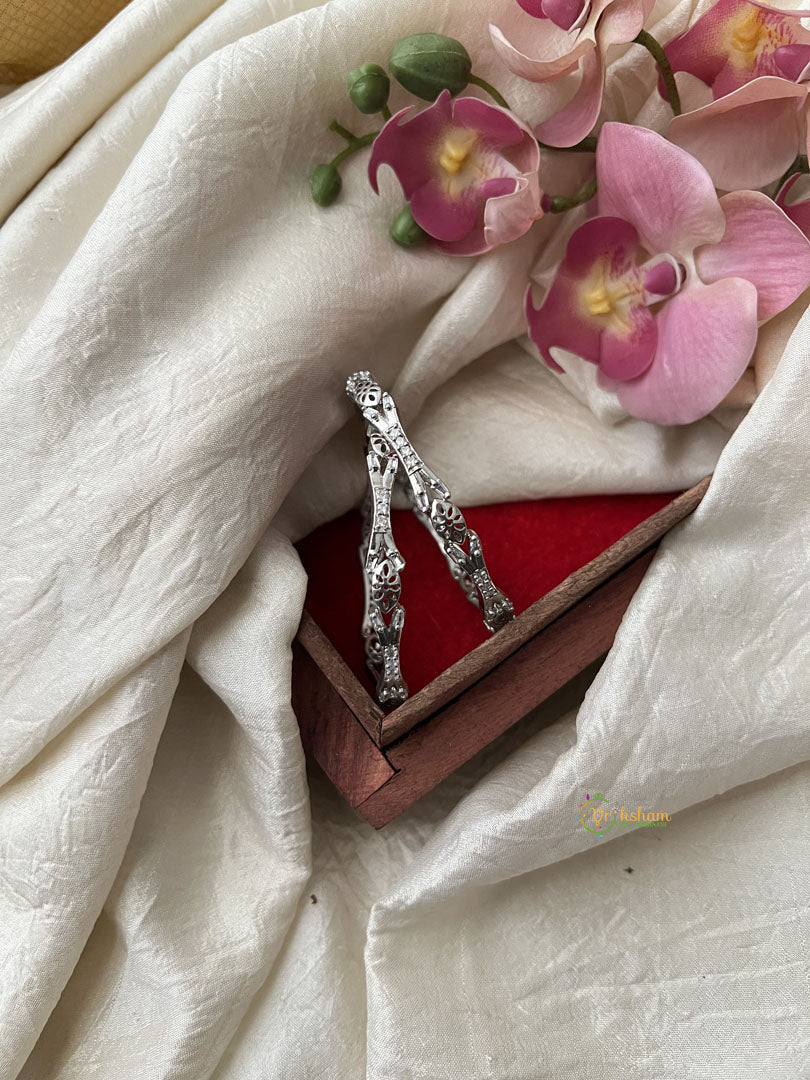 Silver Look Alike Antique AD Stone Bangle Set - AD Stone studded festive Bangles set.comes as pair only.