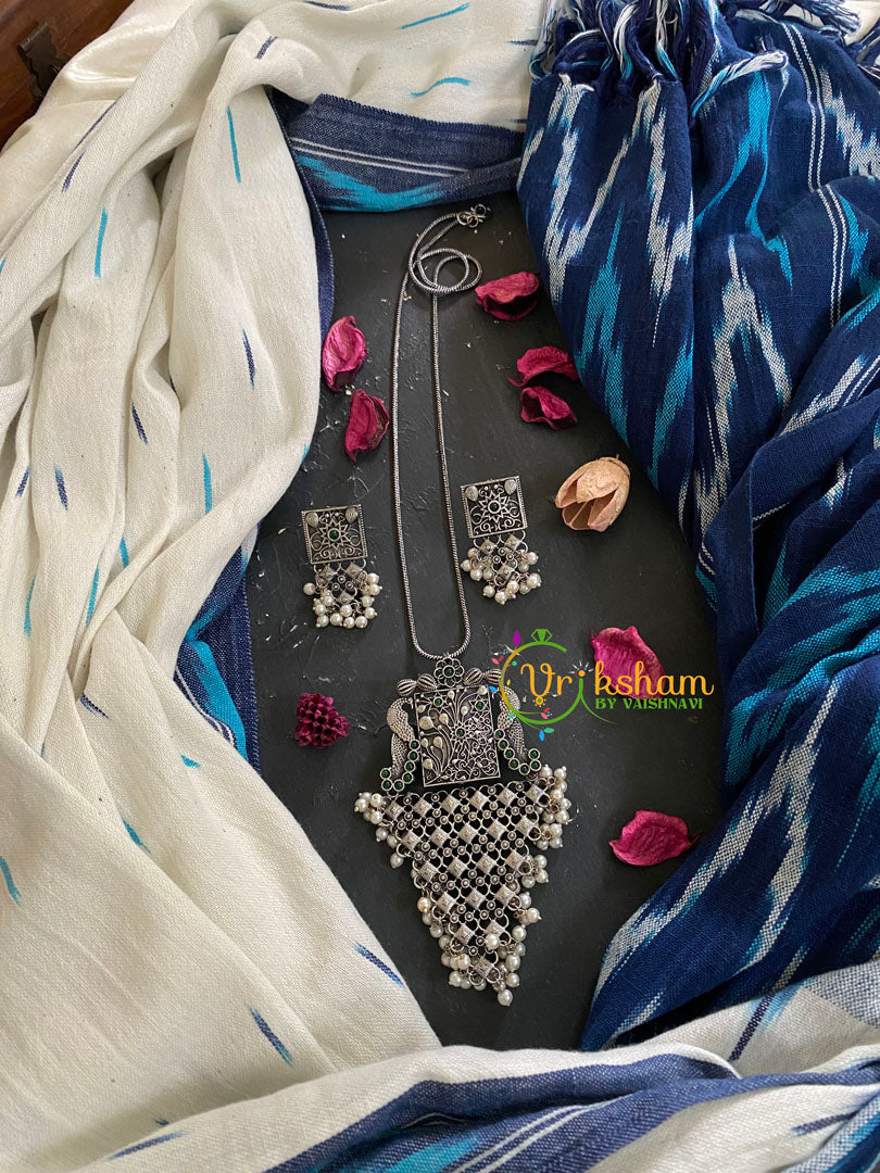 Silver Look Alike Pendant Chain Neckpiece-Green– oxidized german silver penant and chain; comes with matching earrings.