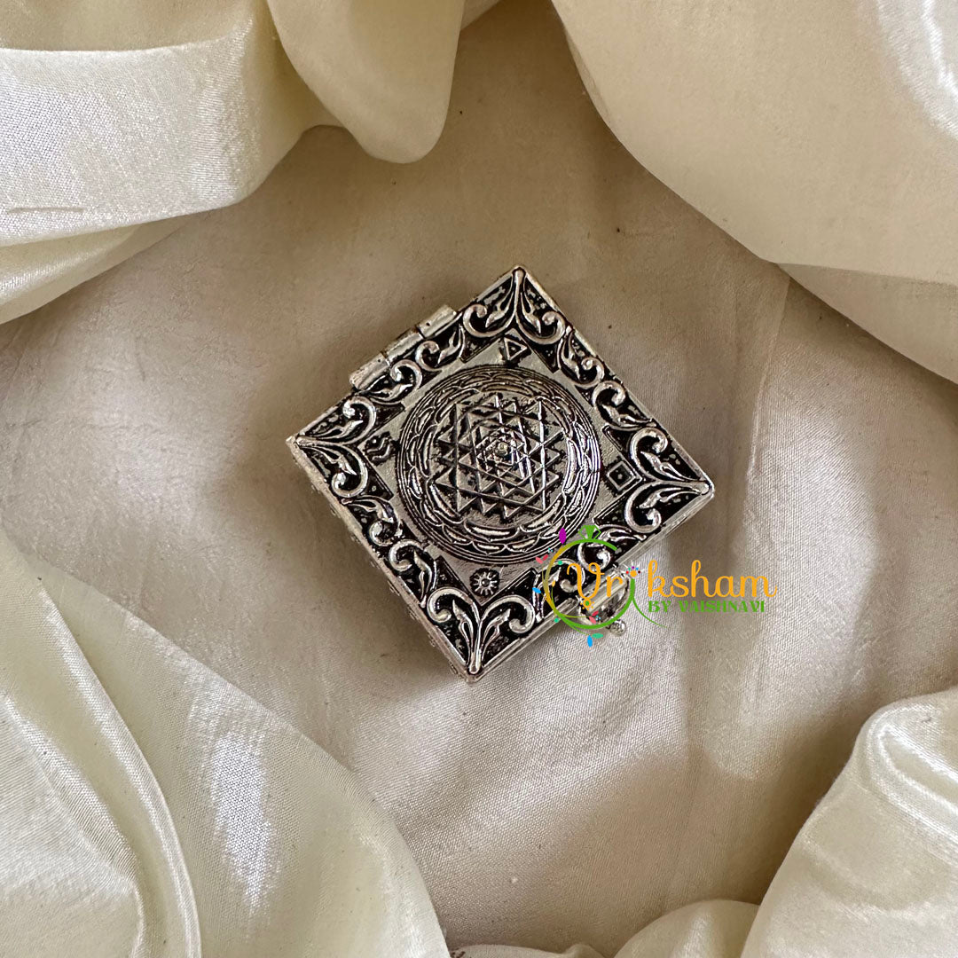 Silver Look Alike Temple Kumkum Box - AD stone studded and engraved antique look polish kumkum box.