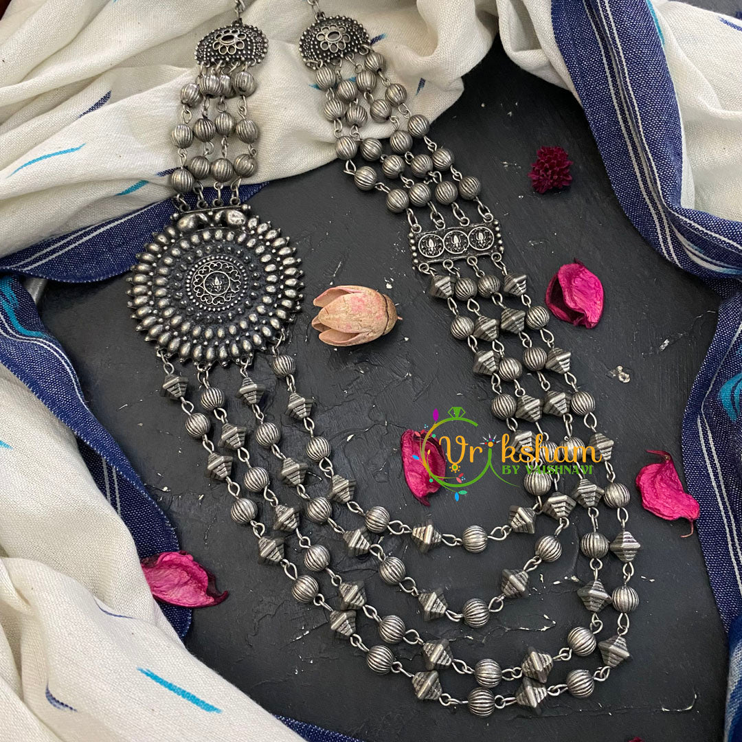 Layered Silver neckpiece with Mogappu-Silver look Alike Boho Neckpiece- stone set neckpiece; NECKPIECE ONLY.