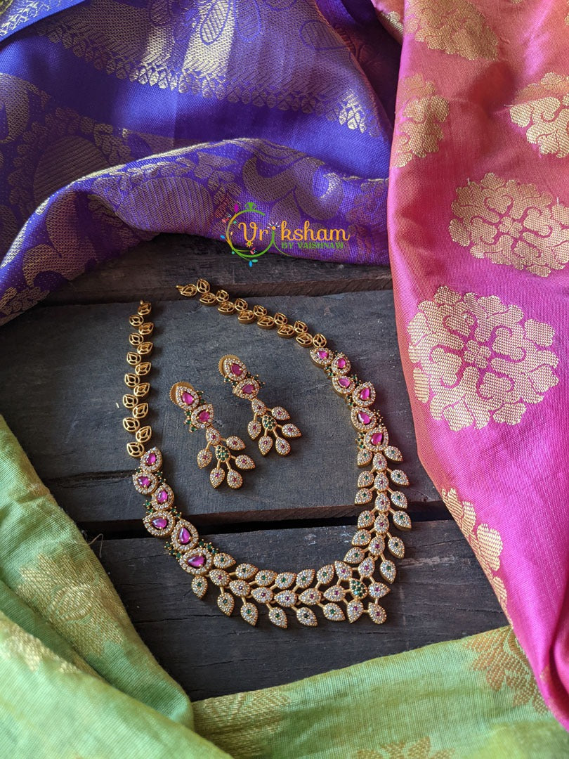 Simple American Diamond Neckpiece - leafy patterned design, comes with matching ear hangings.