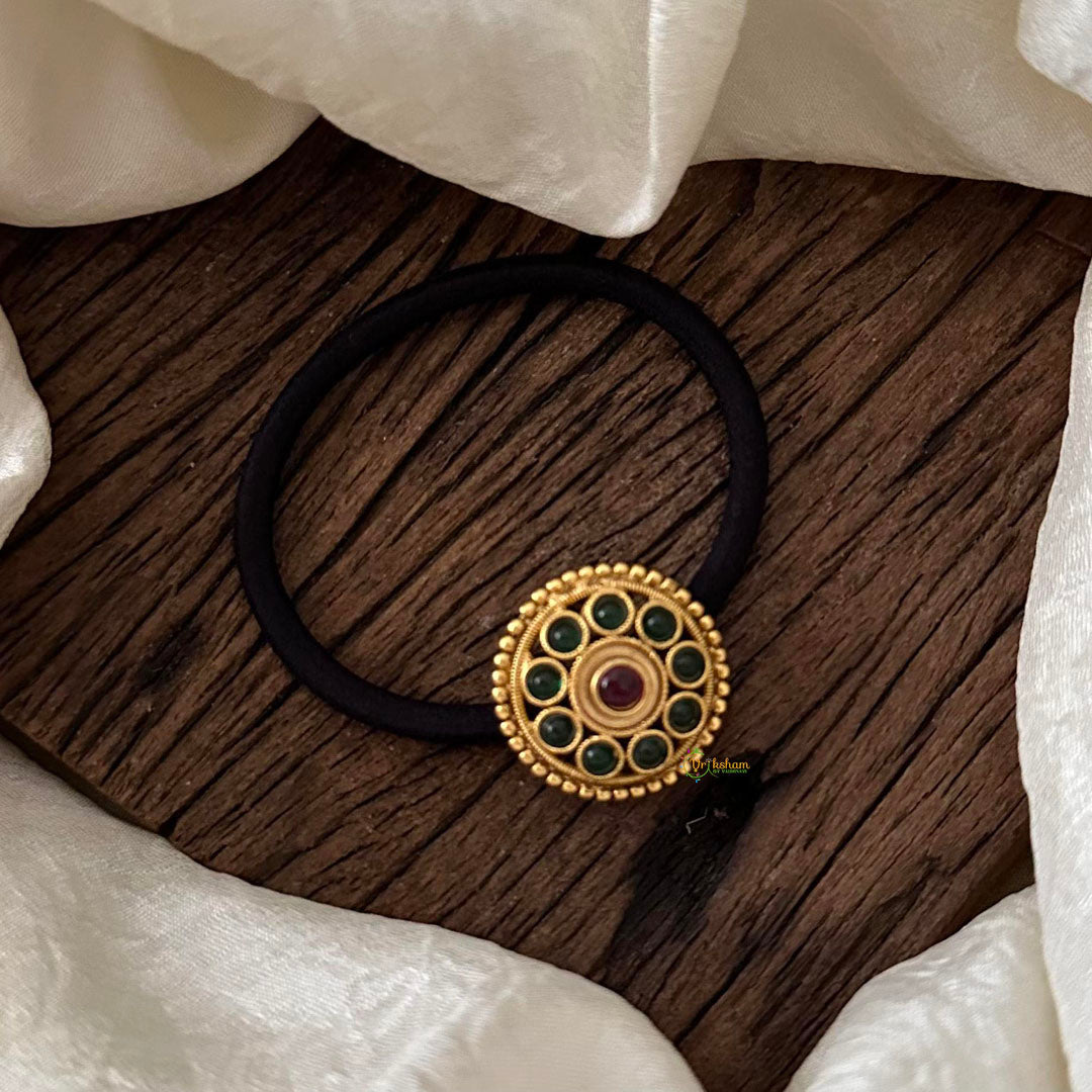 Upgrade your festive wardrobe with our Simple Gold Look Alike Festive Rubber Band! This flower-like band, embellished with green and red stones, adds an elegant touch to any outfit. No need to worry about allergies or discomfort - our rubber material is both stylish and comfortable.