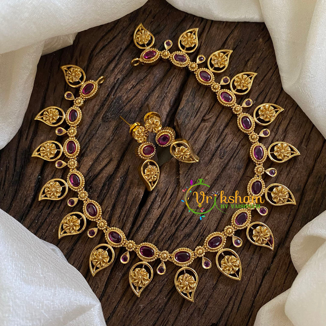 Elegant Simple Maanga Short Neckpiece- small pendant maanga neckpiece ;Ad stone; comes with matching earrings.