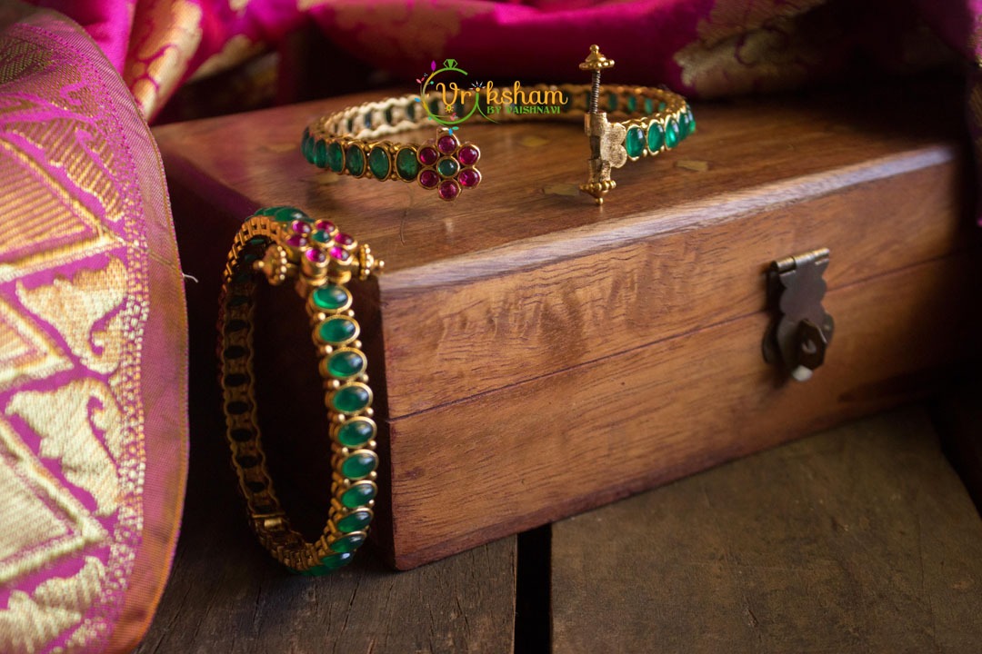 Simple Openable Flower Center Green Bangles - A pair. Please measure your size in our bangles size chart before placing an order.
