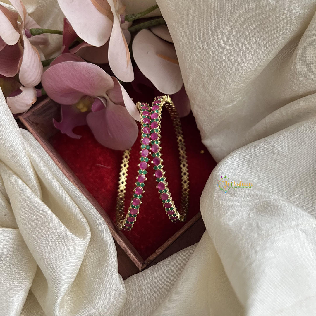 Simple Red Green AD Stone Bangle Set- AD Stone studded festive bangles , Comes as pair only.