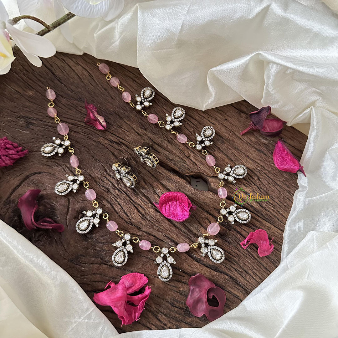 Unleash your inner royalty with the Simple Victorian Diamond Neckpiece. The elegant Victorian design is adorned with a stunning pastel pink bead, adding a touch of luxury and sophistication. Make a statement with this timeless and exclusive piece. Perfect for special occasions or adding a touch of elegance to any outfit.
