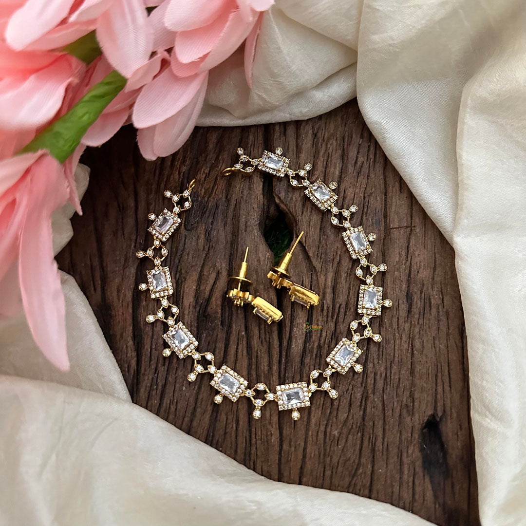 Complete your look with our stunning Simple AD Stone Short Neckpiece-Rectangle! Made with high-quality materials, this neckpiece features sparkling white AD stones and comes with matching earrings for a complete set. Add a touch of elegance to any outfit with this beautiful and versatile accessory.