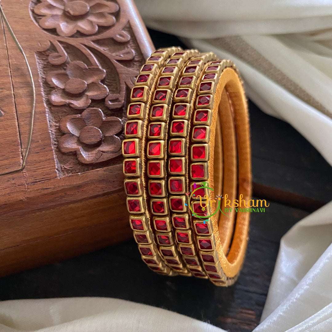 Single Line Dark Red Kundan Bangle-Glossy- Yellow Silk Thread Bangles-Dark Red kundan stone festive bangles , Comes as 4 bangles only.