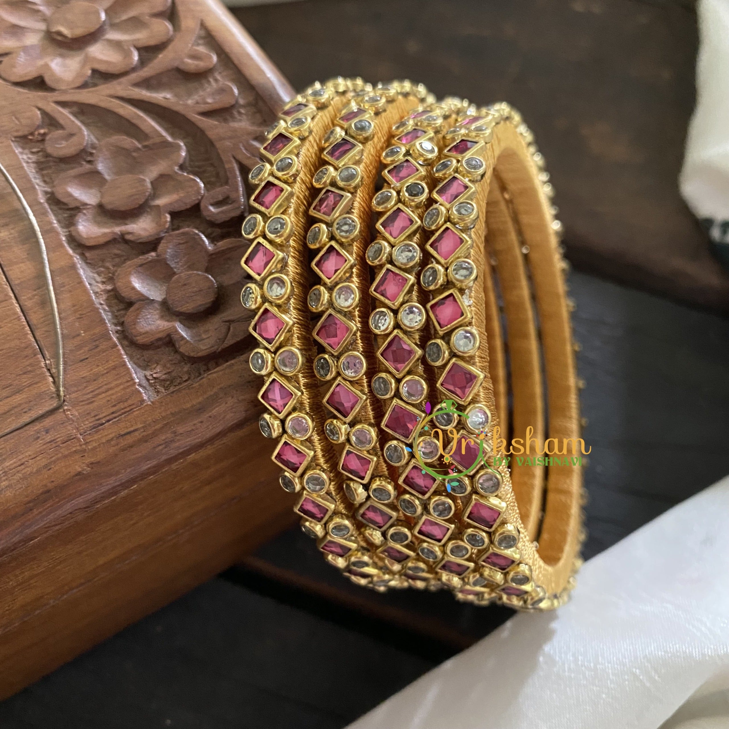 Single Line Kundan Bangle-Dice and Dots-Light Pink-Glossy White stones- Sandal Silk Thread Bangles- kundan stone festive bangles , Comes as 4 bangles only.