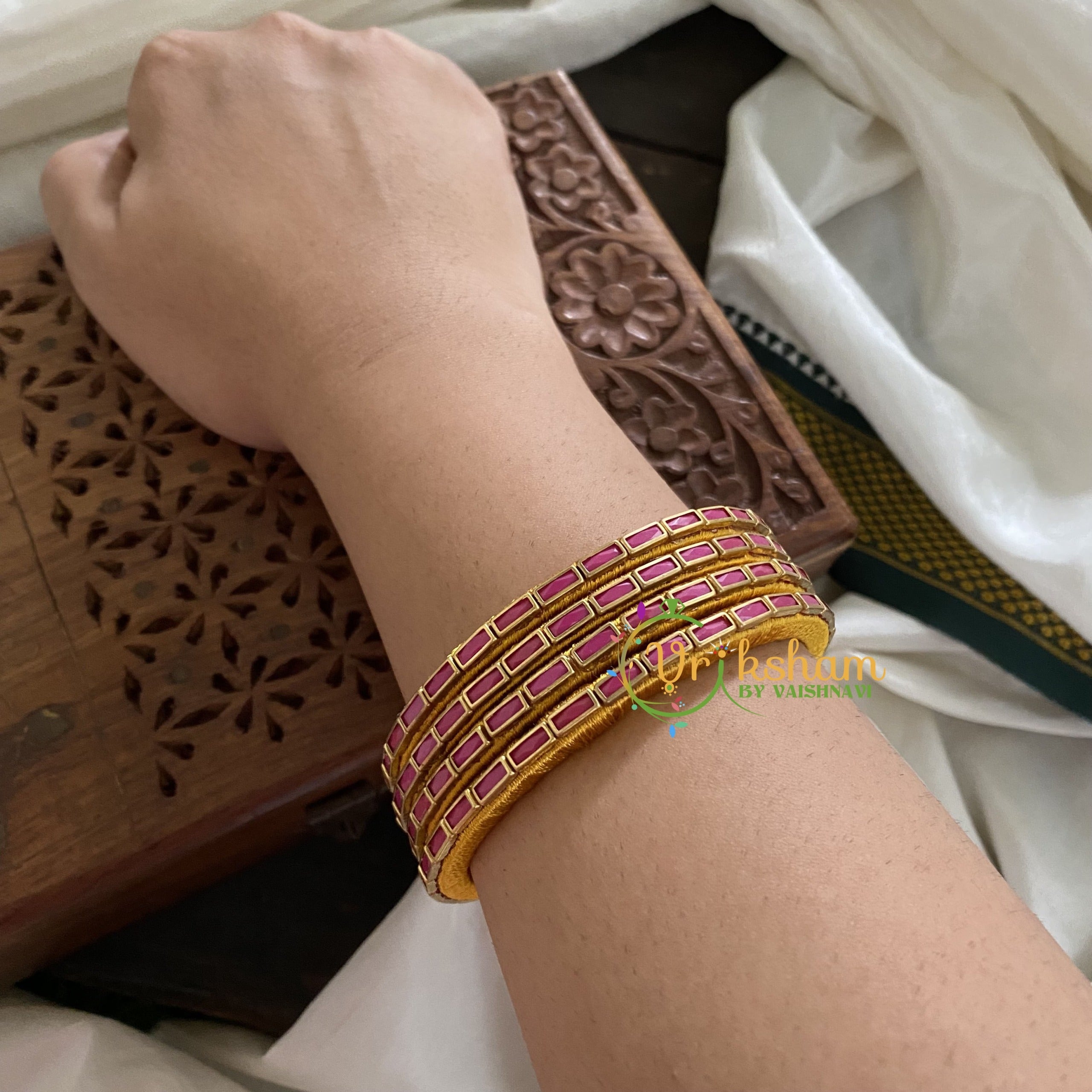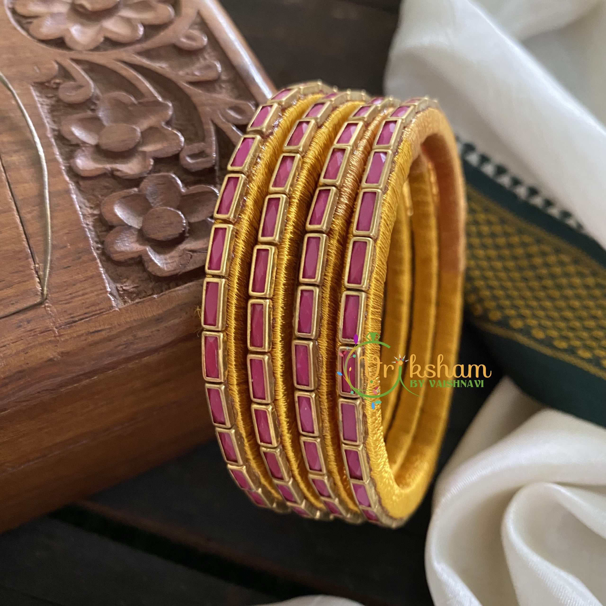 Single Line Kundan Bangle-Lines-Maroon red-Opaque- Sandal Silk Thread Bangles- kundan stone festive bangles , Comes as 4 bangles only.