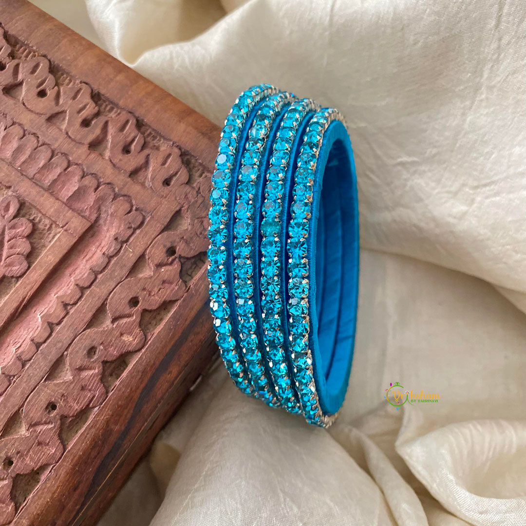Single Line Stone Silk Thread Kundan Bangle - Blue- kundan stone (glossy stone) festive bangles , Comes as 4 bangles only.