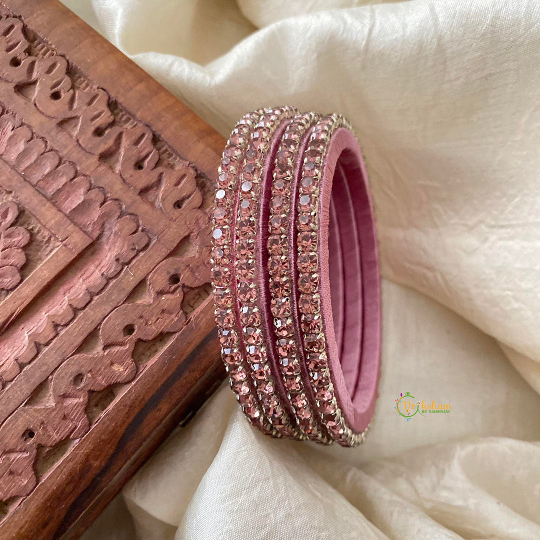 Single Line Stone Silk Thread Kundan Bangle -Pink - kundan stone (glossy stone) festive bangles , Comes as 4 bangles only.