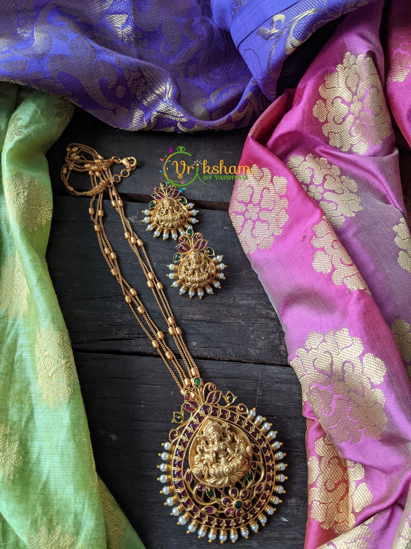 Sri Lakshmi Pendant Chain Neckpiece – This has a simple gold look alike pendant and comes with earrings. This pendant has a very rich look and is very elegant design.