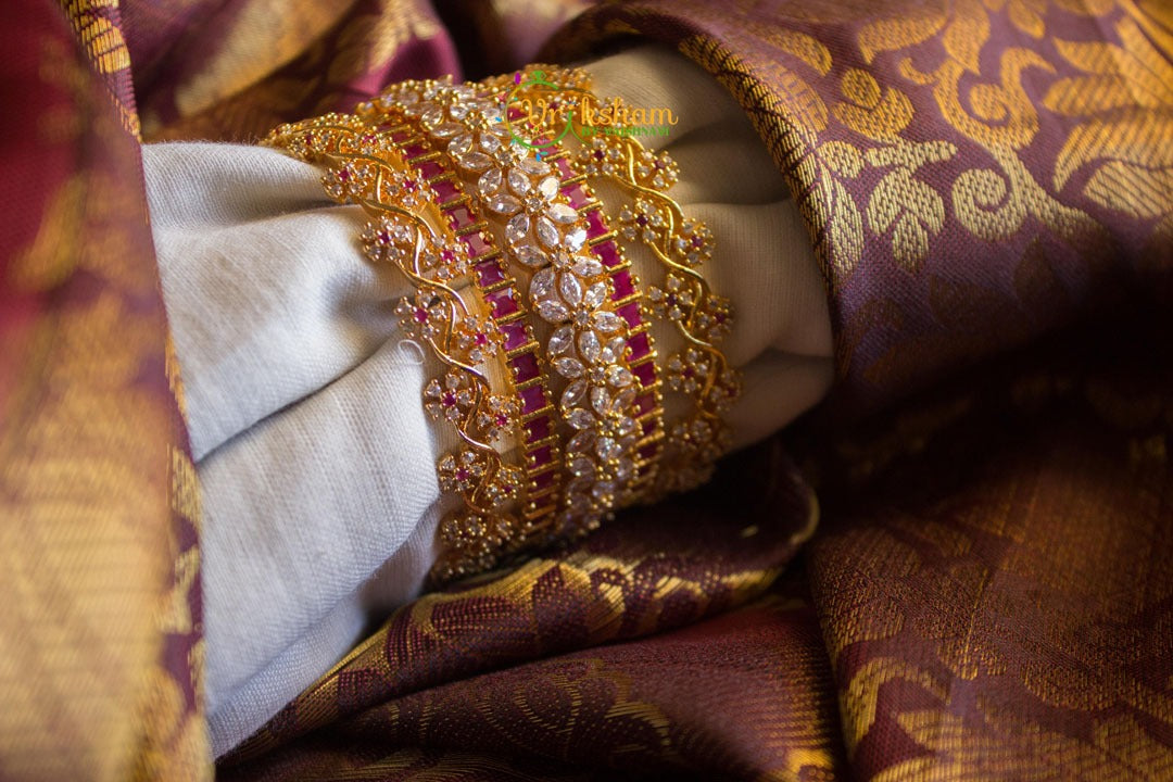 Center - Star Gold American Diamond Bangles - A pair . Please measure your size in our bangles size chart before placing an order