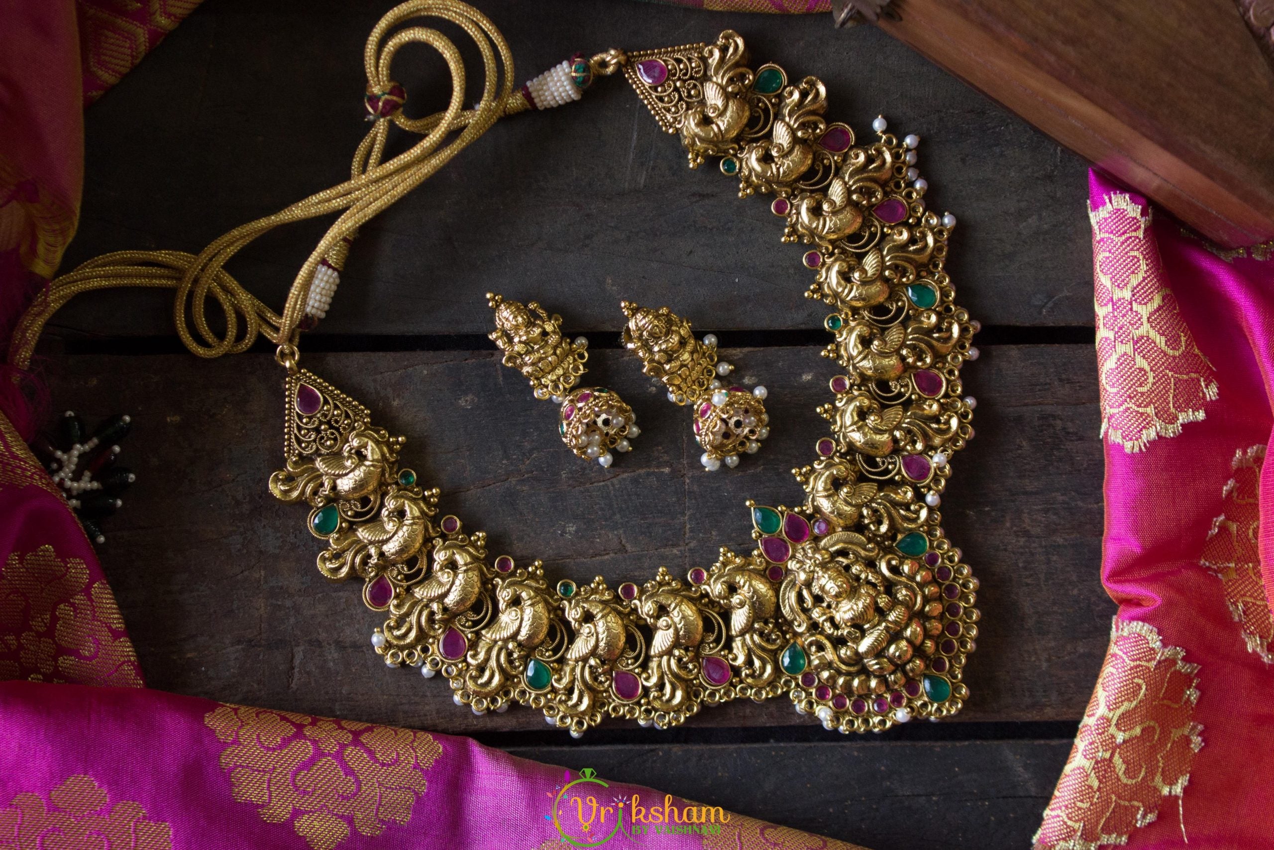 Our hotselling Statement Gold look-alike Lakshmi Choker with cute little jhumkas