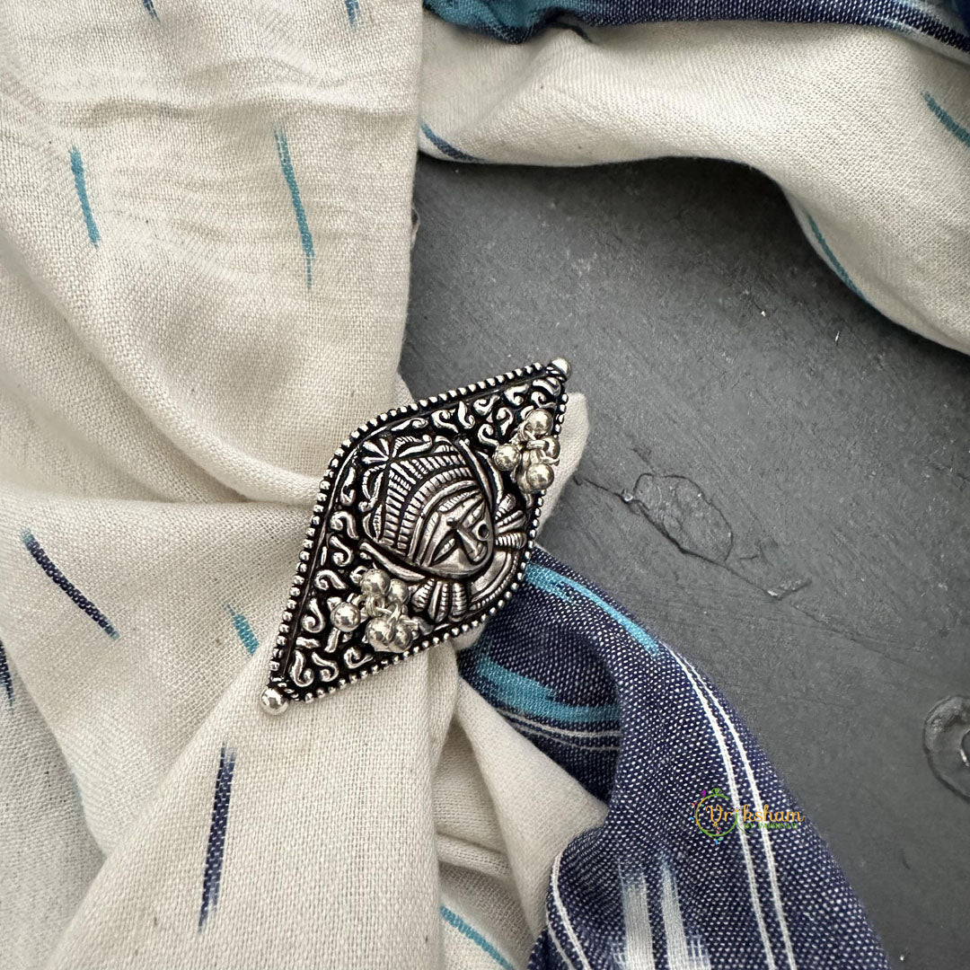 Elevate your style with the Statement Maa Durga Silver Finger Ring. Adorned with intricate silver beads and featuring the iconic goddess Durga, this ring seamlessly combines art and fashion. Make a statement and embrace your inner goddess with this luxurious and exclusive piece.