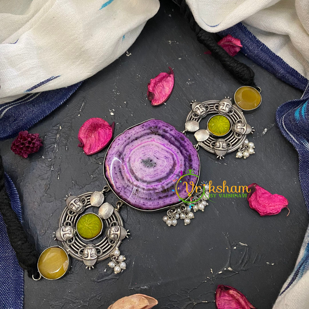 Statement Silver Neckpiece - Silver High Neck Choker, abstract stone neckpiece with violet and olive green stone; NECKPIECE ONLY.