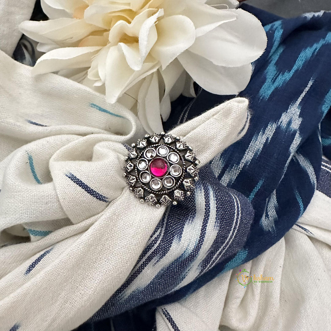 Statement Silver Ring -Finger rings- White and red stone studded oxidized german silver finger ring. Silver look alike polish.