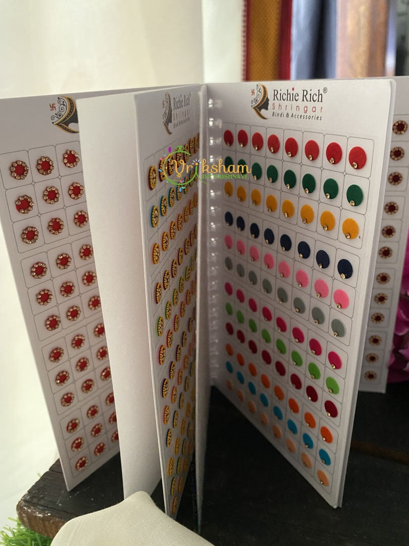 Stone Sticker Bindi Book- Color bindis with stone set in them – pages of bindis of different colors in sheets.