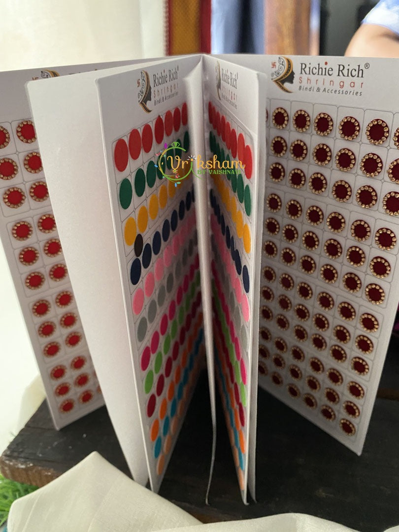 Stone Sticker Bindi Book- Color bindis with stone set in them – pages of bindis of different colors in sheets.