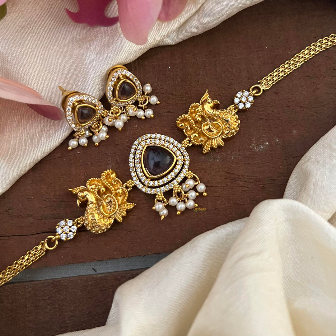 Stylish AD Stone Peacock Choker-Purple-G12918