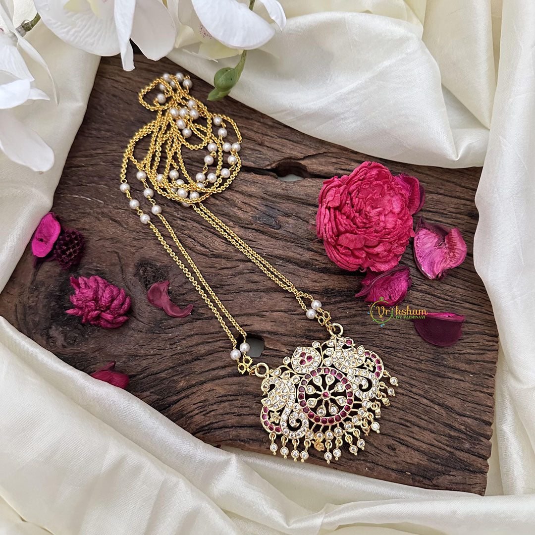 This stunning AD stone pendant chain adds a touch of elegance to any outfit. Featuring sparkling stones and a delicate chain, it is the perfect accessory for a sophisticated and...