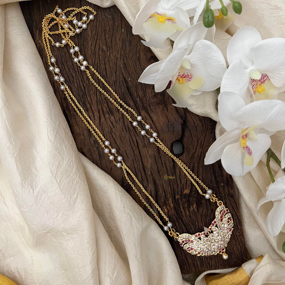 Stylish AD Stone Twin Bird Pendant Chain-Red-Pearl-G13699