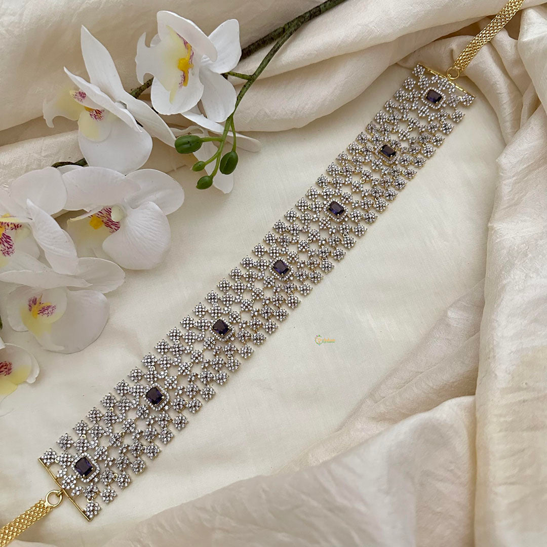 Enhance your bridal look with our Premium Bridal American Diamond Hip Chain. Exude sophistication with the Ganga jamuna American diamond design and luxurious red color. Elevate your style and make a statement on your special day.