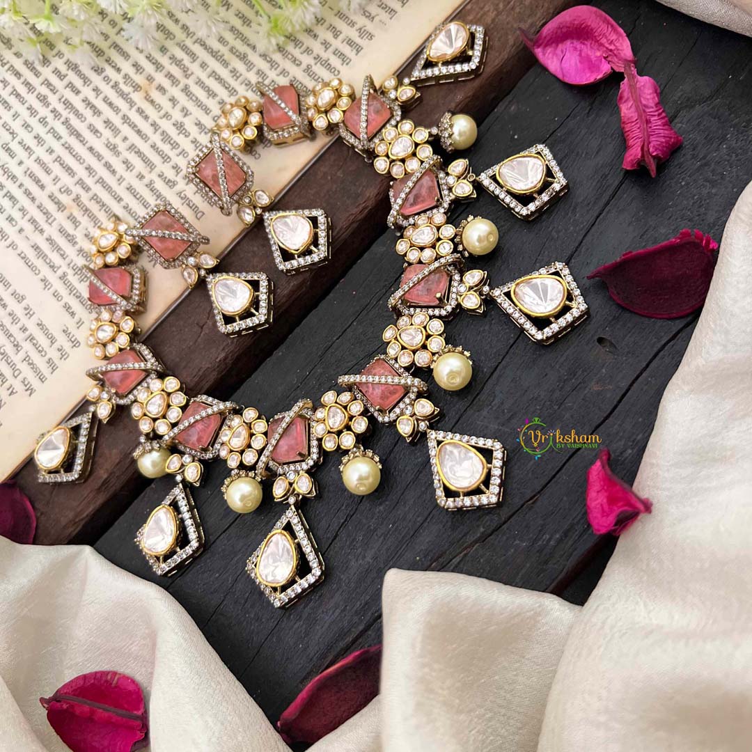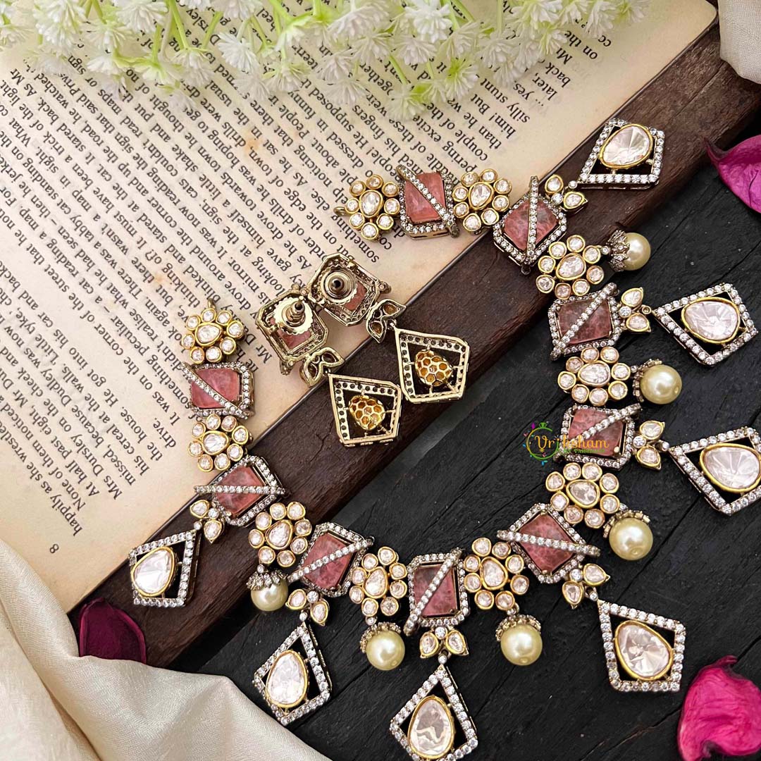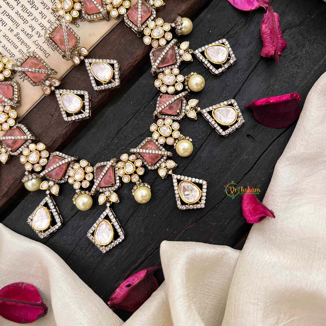 Elevate your jewelry collection with our Stylish Floral Pastel Pink Victorian Diamond Haram. This exclusive piece features intricate floral designs and sparkling pastel pink and diamond accents. Embrace luxury and elegance with this unique and timeless addition to your wardrobe.