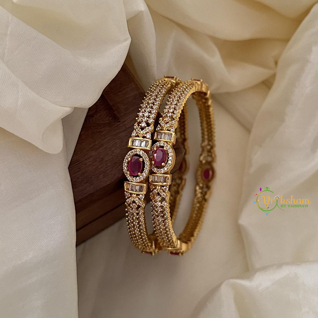 Stylish Gold Polish AD Stone Bangle Set - AD Stone studded festive bangles , Comes as pair only.