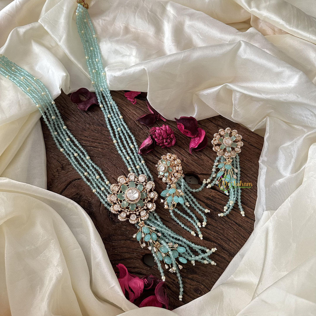 Experience the ultimate luxury with our Stylish Layered Victorian Diamond Floral Neckpiece. Adorned with a pastel green bead, this exquisite piece boasts intricate floral designs exuding elegance and sophistication. Channel your inner royalty with this stunning statement necklace.