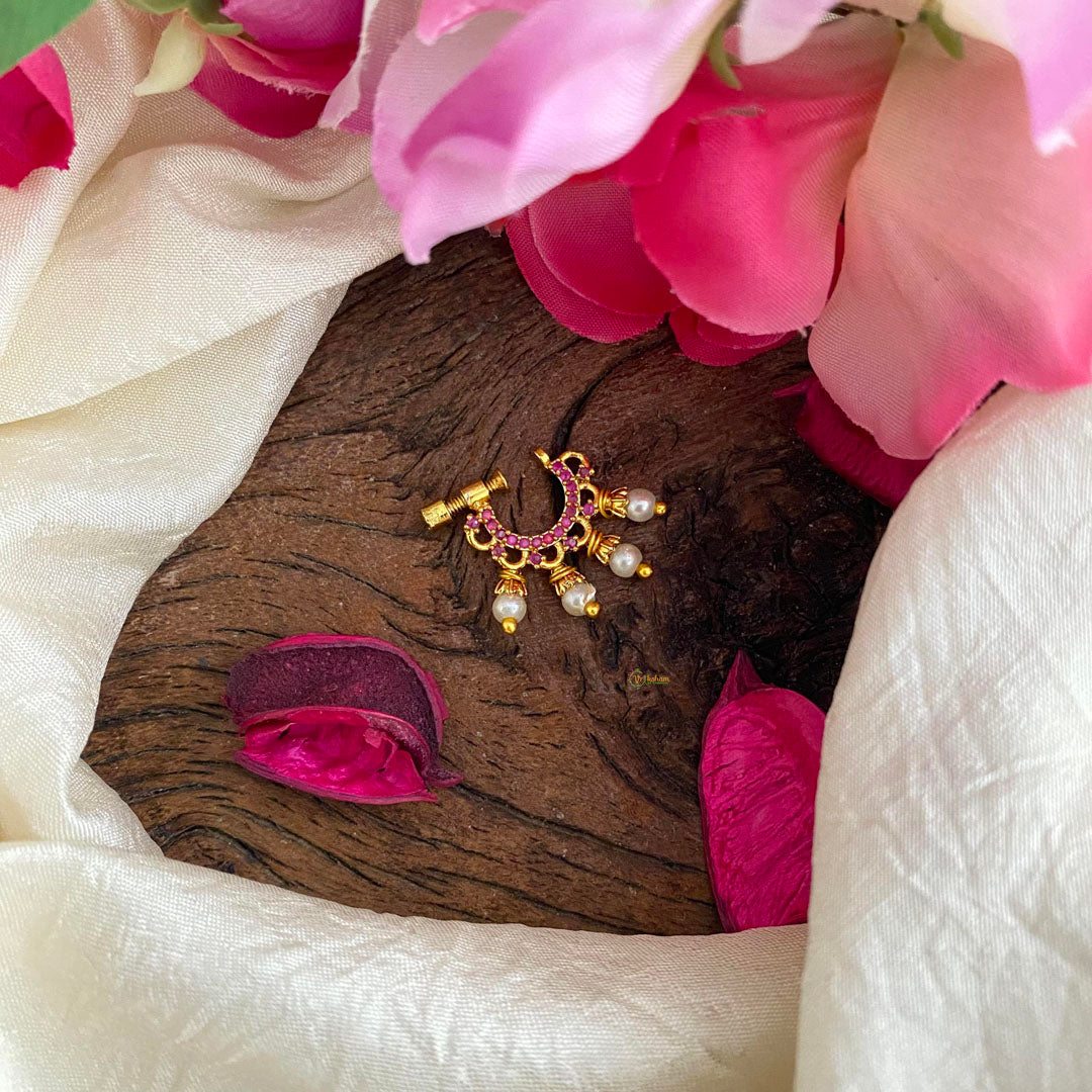 Stylish Red Floral AD Stone Nath / Nose pin-Pearl-G13952