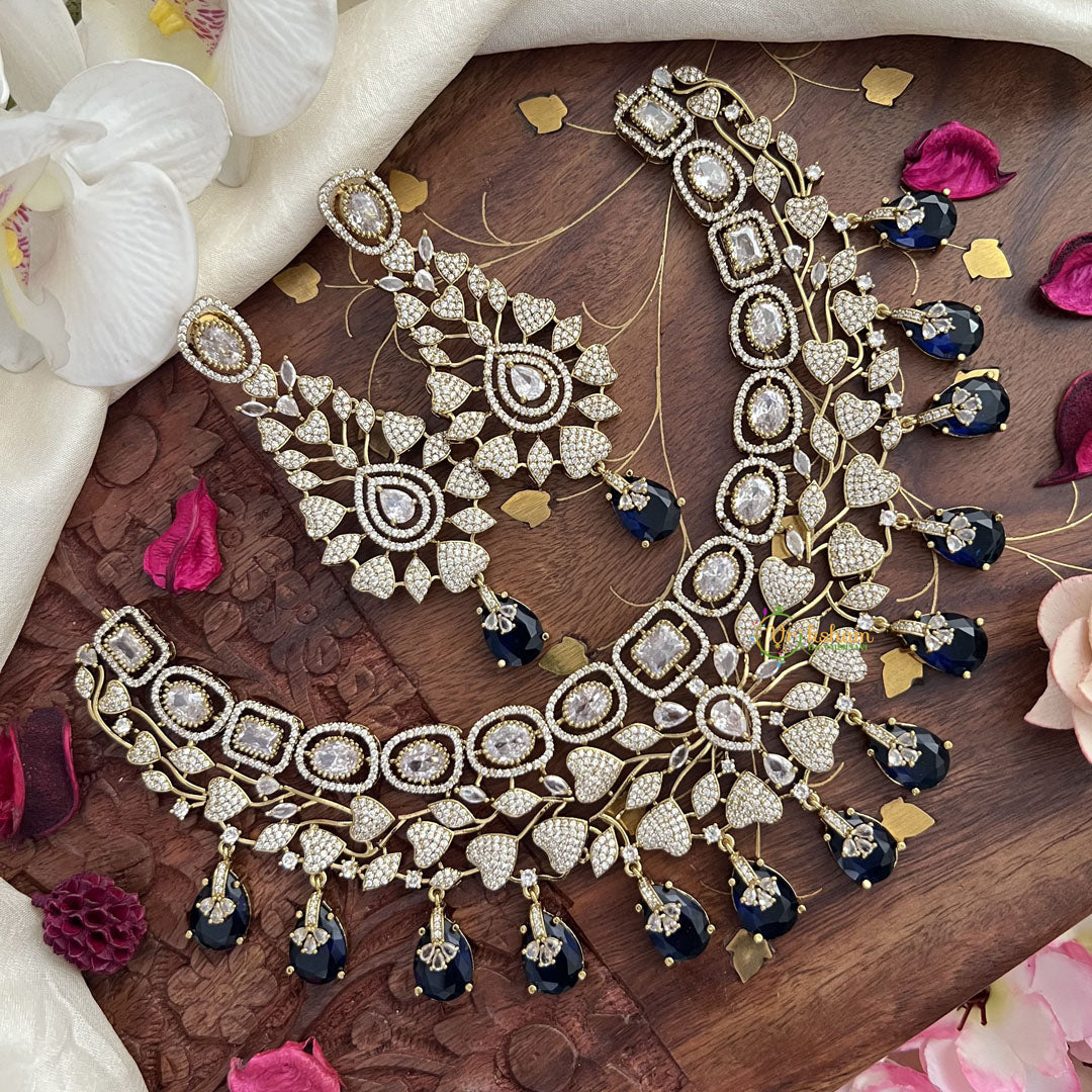Elevate your fashion game with our Stylish Victorian Diamond Choker. Crafted with intricate diamond details and finished with beautiful blue beads, this choker will add a touch of elegance to any outfit. Perfect for a night out or special occasion, stand out from the crowd with this stunning accessory. Comes with matching earrings.