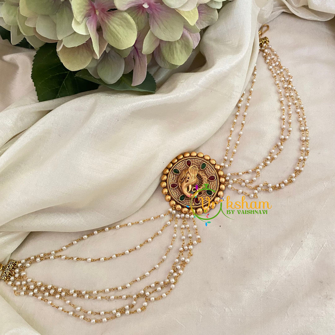 Temple Bun Billai with Side Chains -Ganesh - single billai– Hair Accessory- imitation kemp stone set single piece billai with layers of side chains.