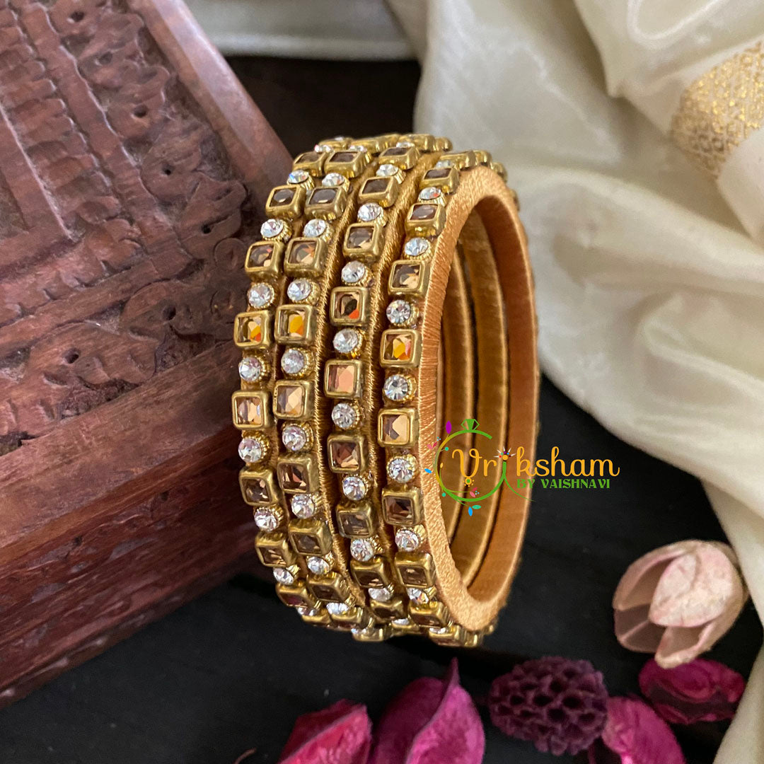 Thin Silk Thread Kundan Bangle-Gold-Square and Dot-G4942