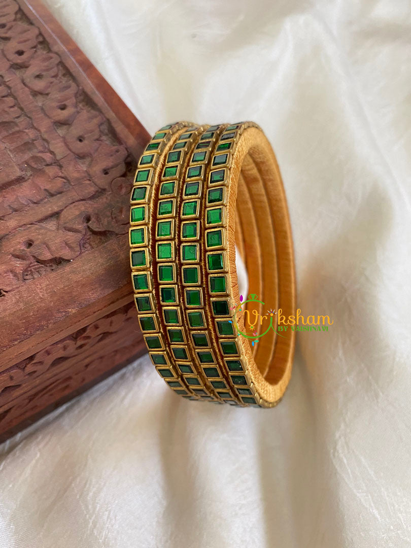 Thin Silk Thread Kundan Bangle -Dark Green-G6080