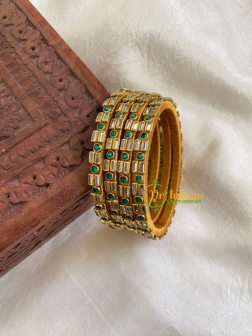 Thin Silk Thread Kundan Bangle -White Green- Geometric kundan stone (glossy or matt stone) festive bangles , Comes as 4 bangles only.