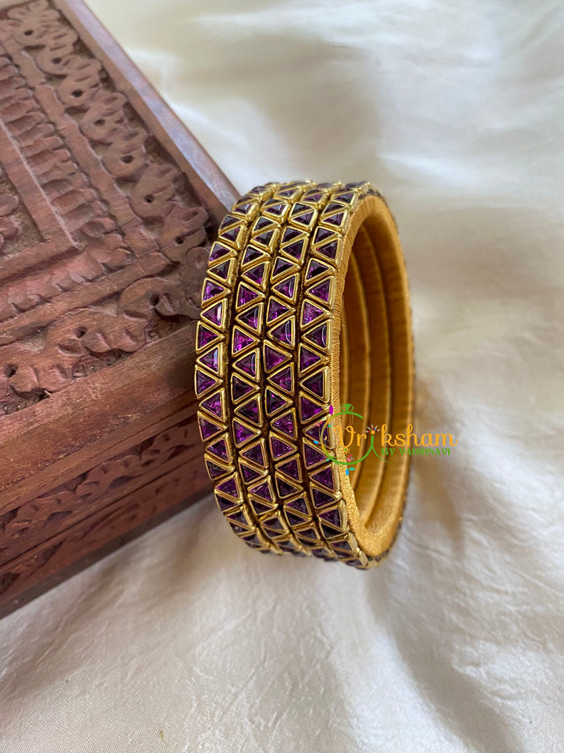 Thin Silk Thread Kundan Bangle -Purple- kundan stone (glossy or matt stone) festive bangles , Comes as 4 bangles only.