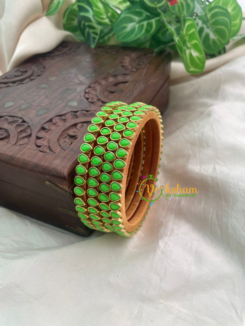 Light Green Matt Thin Silk Thread Kundan Bangle -Tilak -G8567