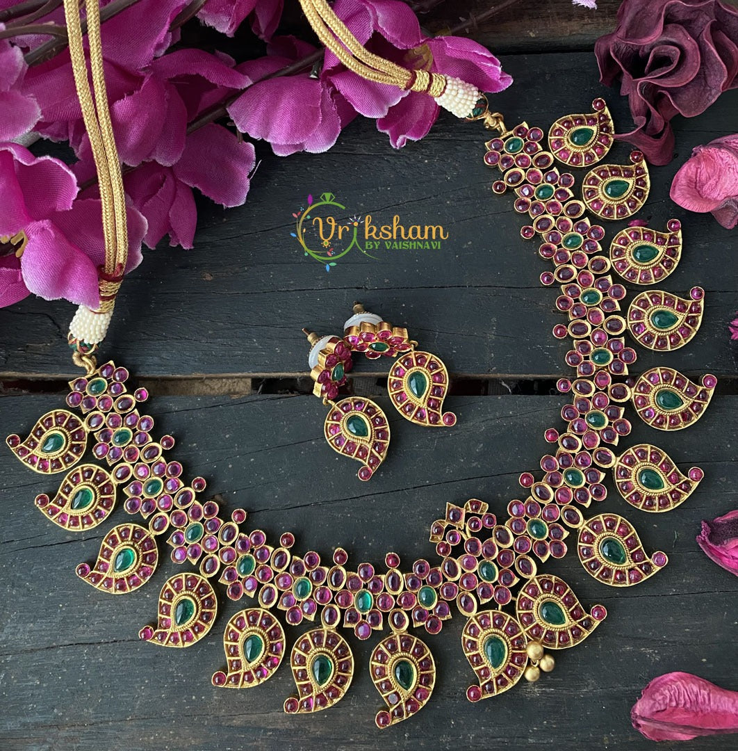 Exquisite Traditional Maanga Kemp Choker -Red Green kemp stone studded, Comes with matching studs.