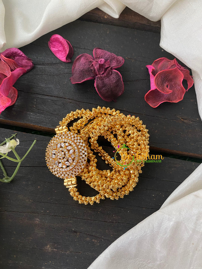 Traditional AD Stone Mogappu Chain-White-Floral– stone studded white ad stone flower pattern mogappu/mugappu chain.