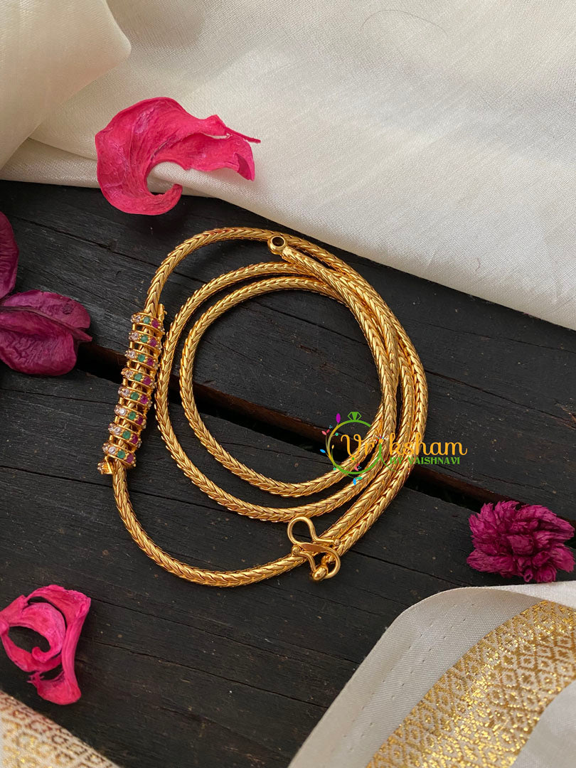 Traditional AD Stone Mogappu Chain-Red White Green- Long Spiral pattern stone studded mugappu chain/Mogappu chain.